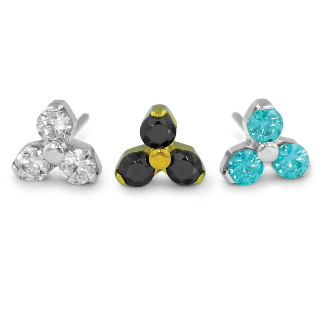Trinity en Swarovski et titane ASTM F136, (titane et bijou fabriqués aux USA), garanti à vie contre les défauts de fabrication. Polissage miroir.
