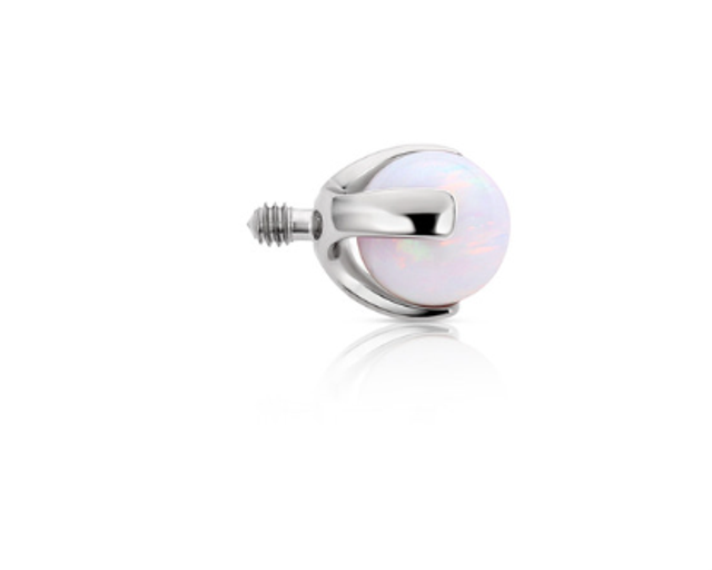 Opale de synthèse griffée titane (titane et bijou fabriqués aux USA), garanti à vie contre les défauts de fabrication.